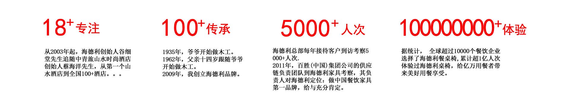 海德利總部在深圳,同時在佛山、惠陽、江門等地擁有四個生產基地。大部分家具都是自產自銷,沒有中間環(huán)節(jié),最大限度降低成本才能給餐飲企業(yè)最實惠的產品價格。